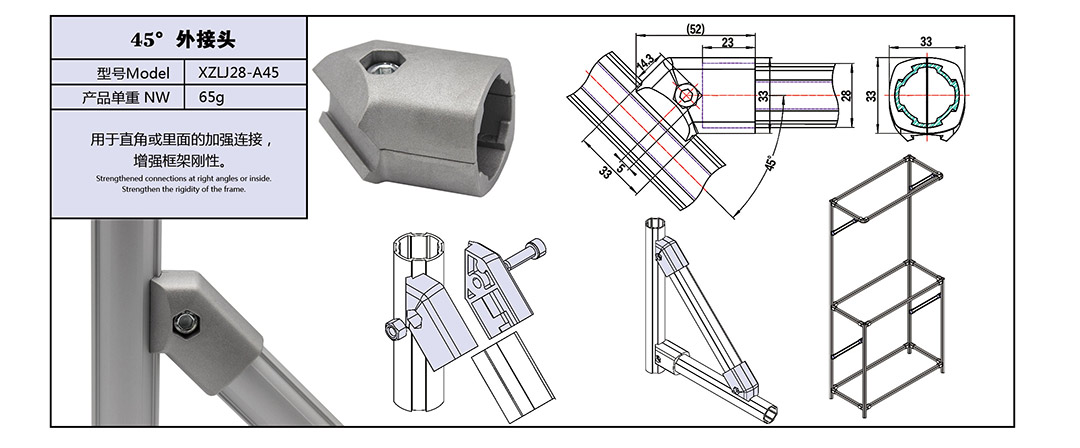 铝管接头 45°加强接头 XZLJ28-A4545